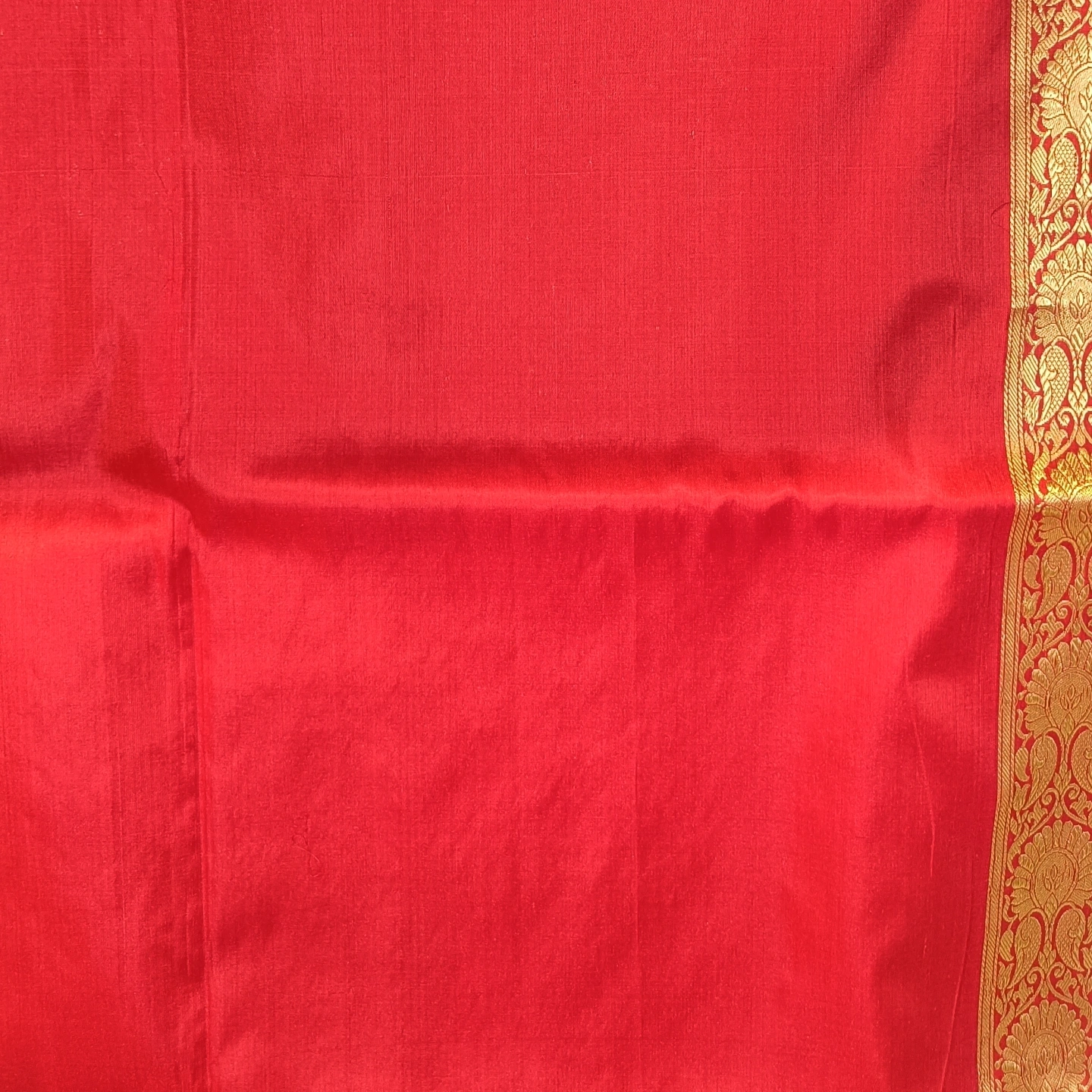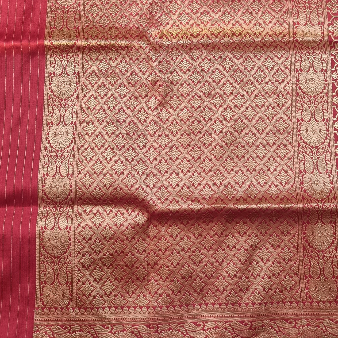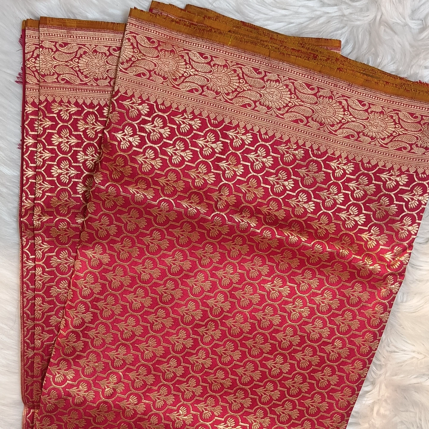 This saree is an opulent display of the Tanchui weaving technique, executed on a premium Katan silk base to provide a structured, high-luster drape. The body features an all-over Brocade (Waskat) pattern, where complex floral and paisley motifs are woven in a continuous, dense layout that gives the fabric a rich, embossed texture. Complementing this ornate body is a traditional Banarasi border adorned with a sophisticated paisley vine and geometric bands, all finished with a refined zari sheen. The combination of the heavy silk construction and the intricate, multi-layered threadwork results in a regal garment that exemplifies classical heritage craftsmanship, making it a perfect choice for weddings and grand festive celebrations.