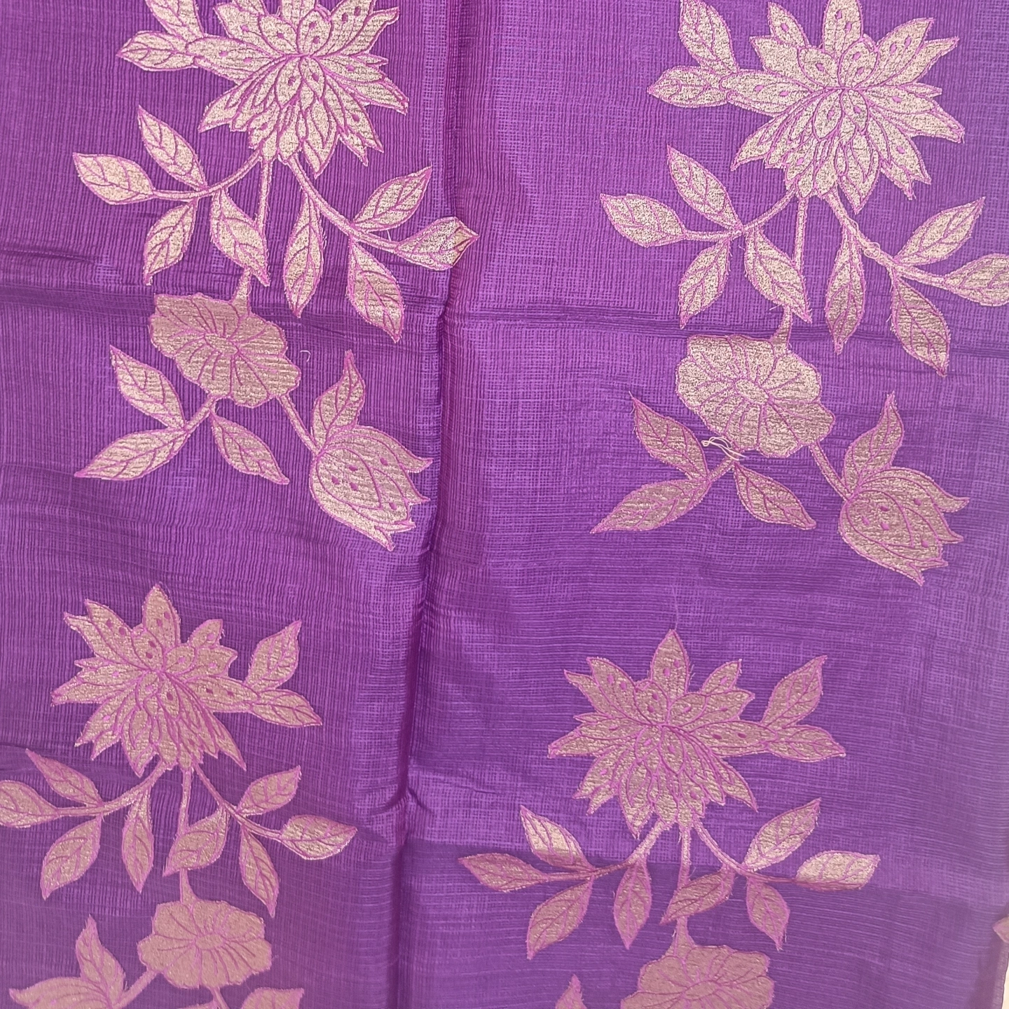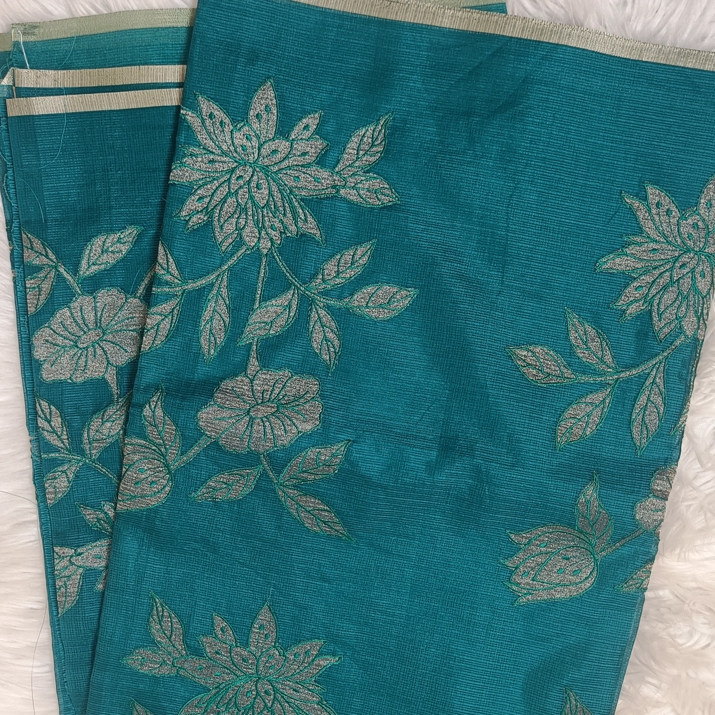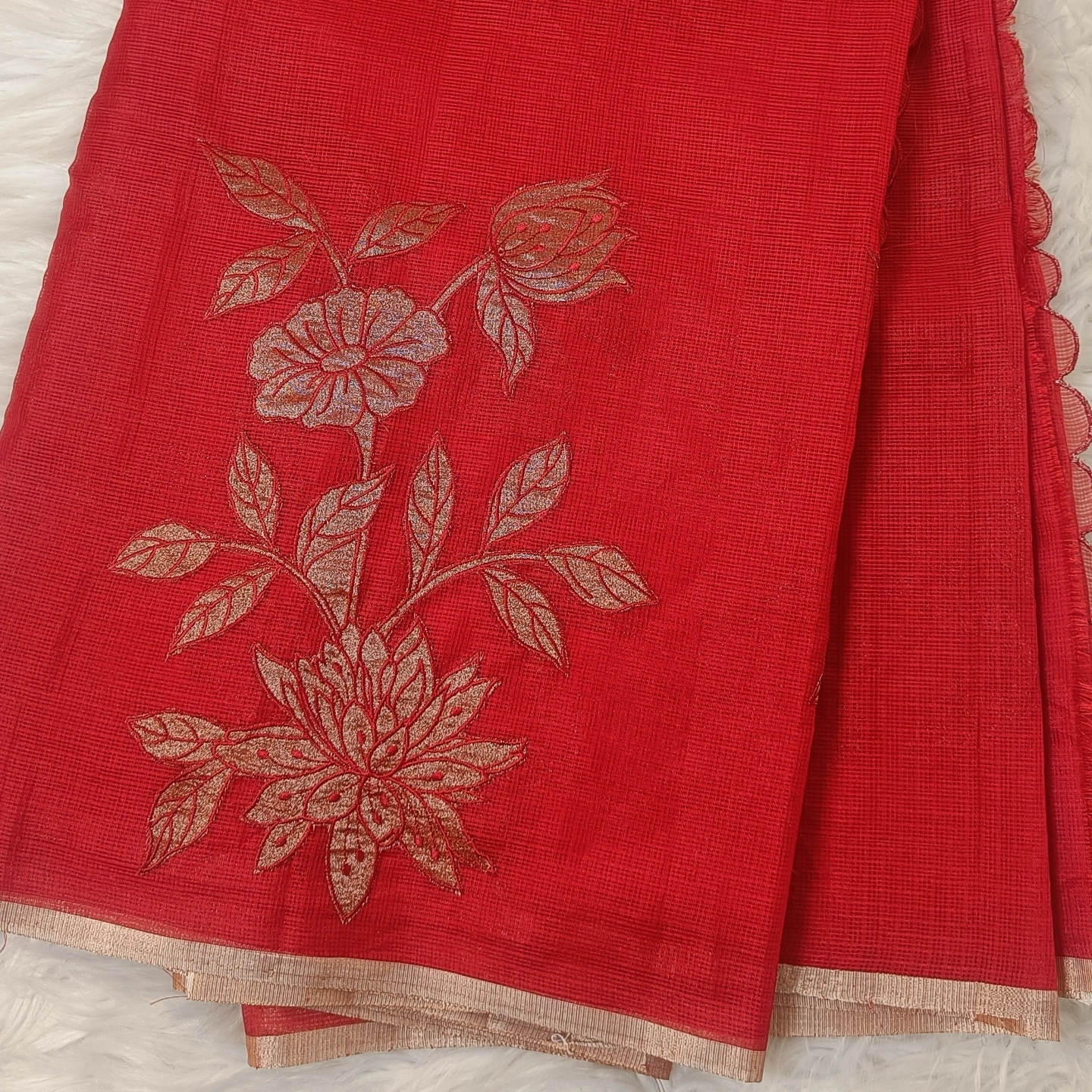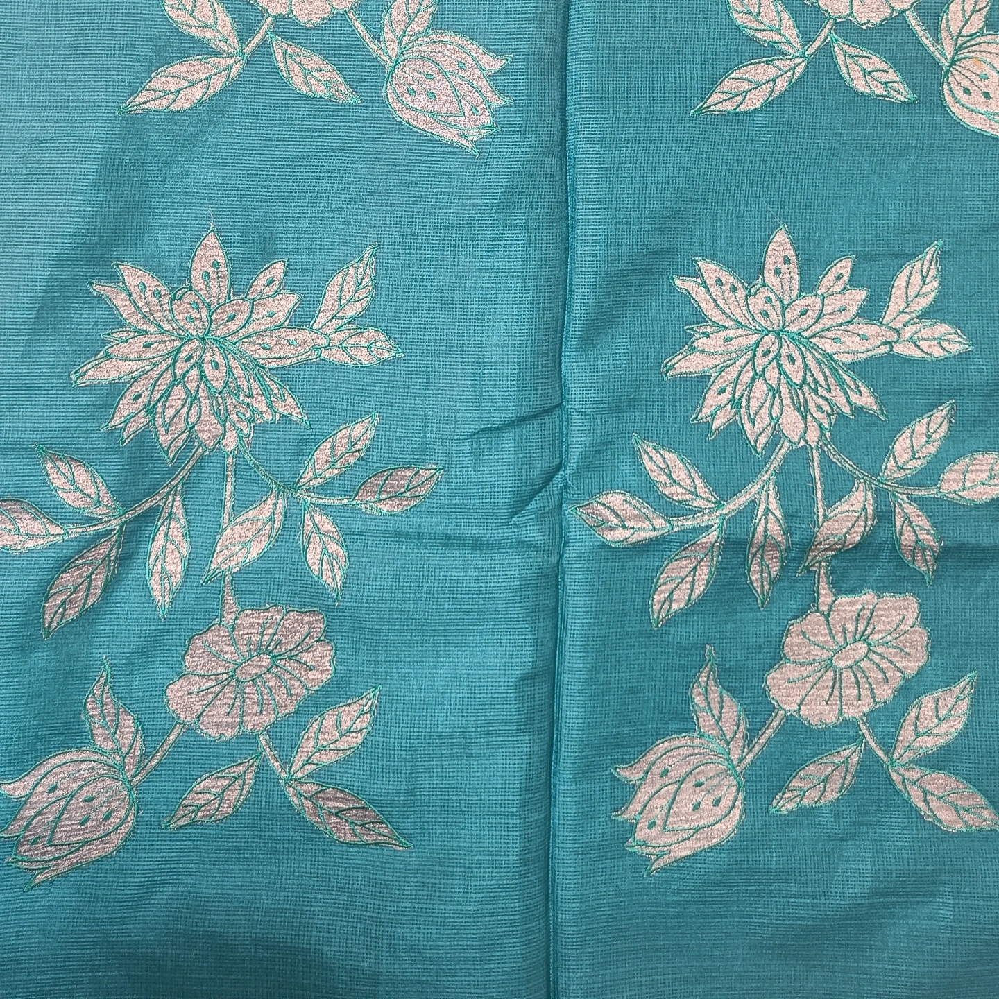 Lightweight and airy, this kota cotton saree showcases a finely textured weave that ensures effortless comfort throughout the day. Adorned with elegant floral embroidery on the pallu, it brings a touch of subtle artistry and grace. The soft, delicate border enhances its refined appeal, making it perfect for both casual elegance and intimate occasions. A timeless piece that blends simplicity with intricate craftsmanship.