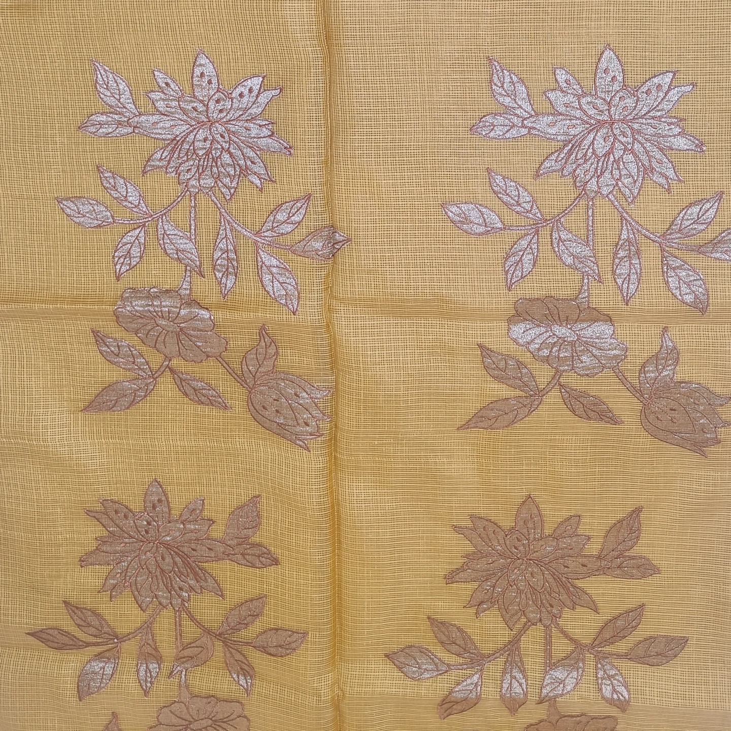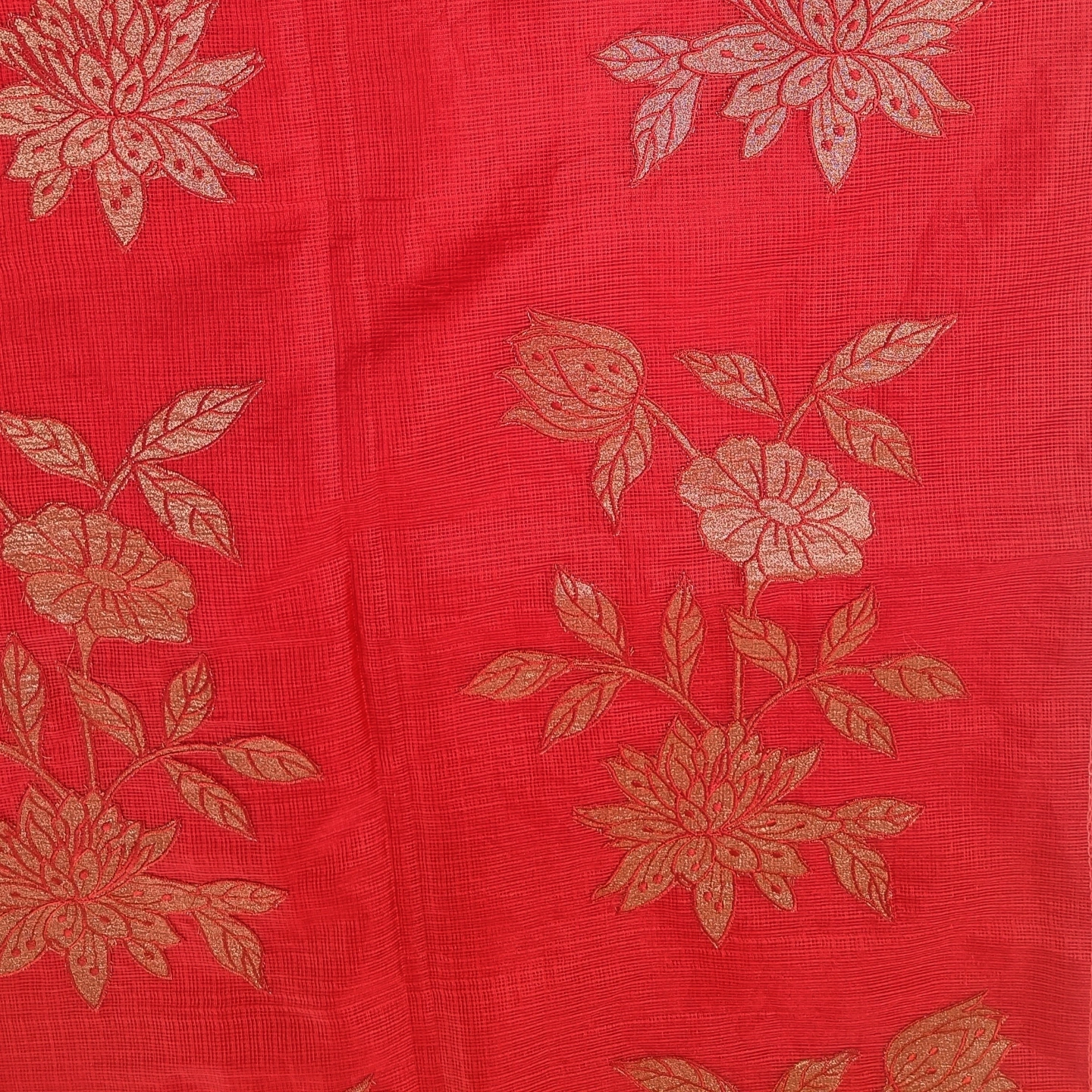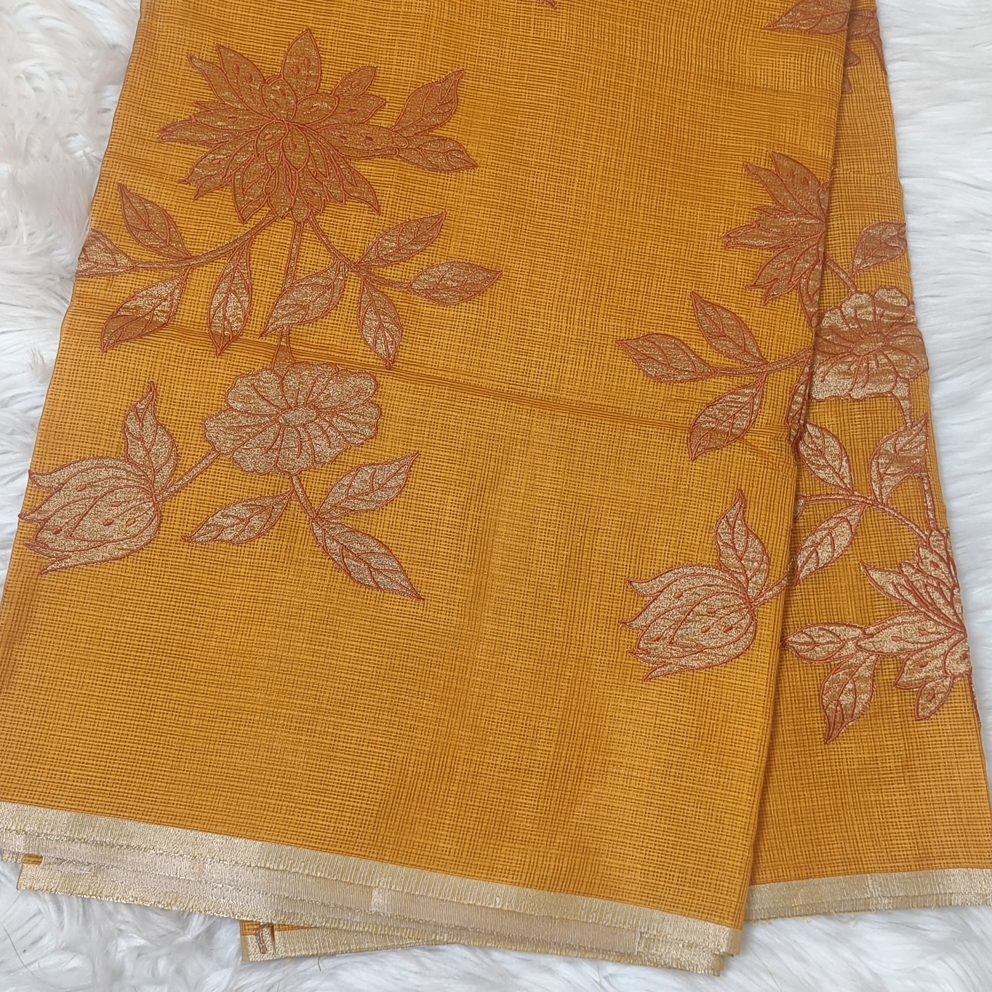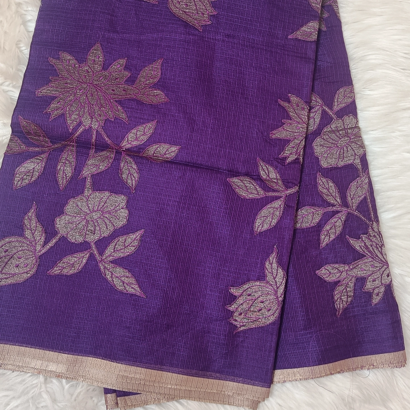 Lightweight and airy, this kota cotton saree showcases a finely textured weave that ensures effortless comfort throughout the day. Adorned with elegant floral embroidery on the pallu, it brings a touch of subtle artistry and grace. The soft, delicate border enhances its refined appeal, making it perfect for both casual elegance and intimate occasions. A timeless piece that blends simplicity with intricate craftsmanship.