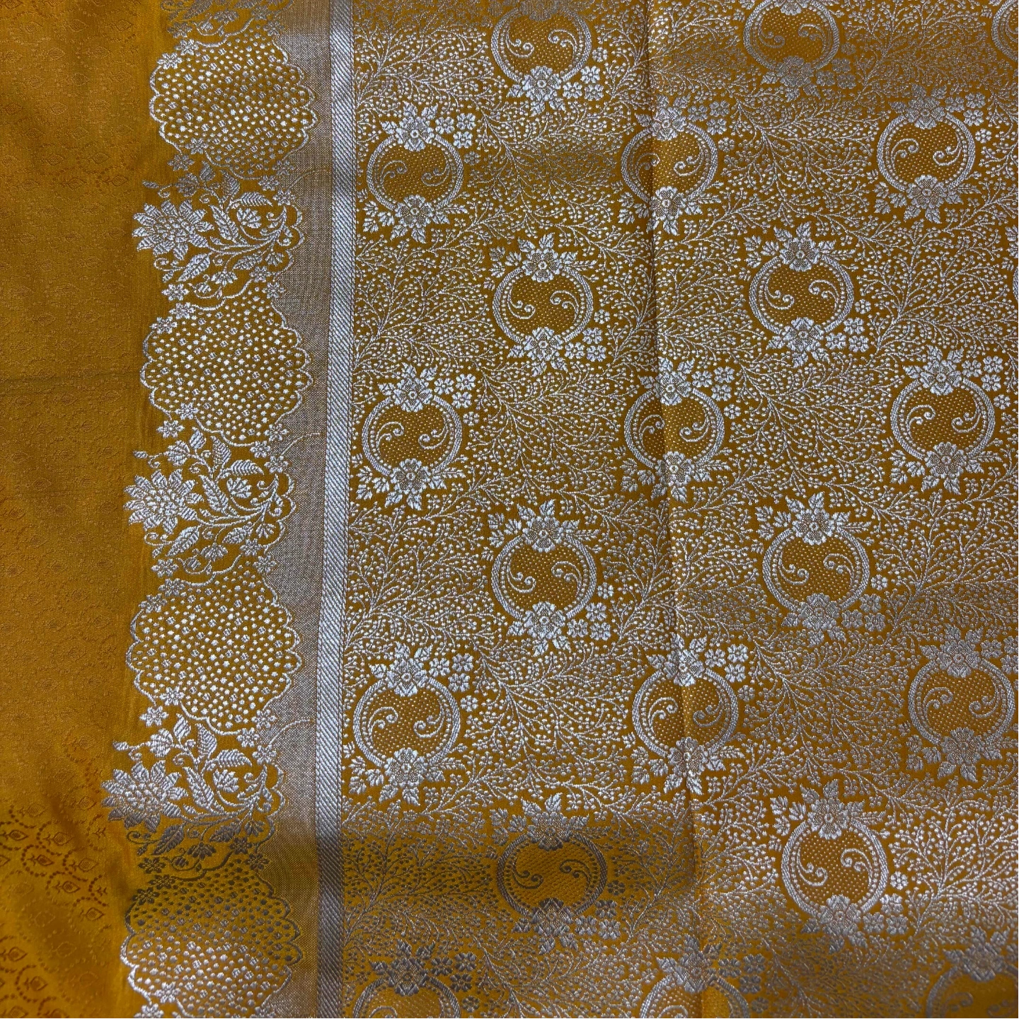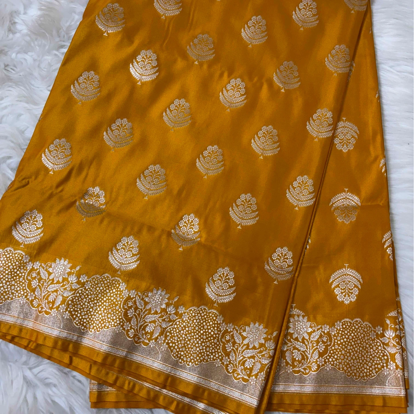A classic mashru saree that beautifully blends traditional weaving with a smooth, lustrous finish. Adorned with delicate woven motifs and complemented by a finely detailed border, it carries an understated elegance. The fabric offers a comfortable drape with a subtle sheen, making it an ideal choice for festive occasions and refined everyday wear.