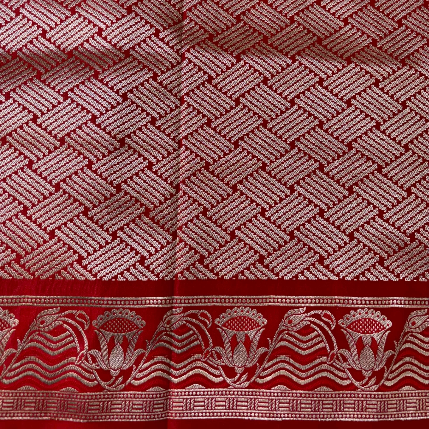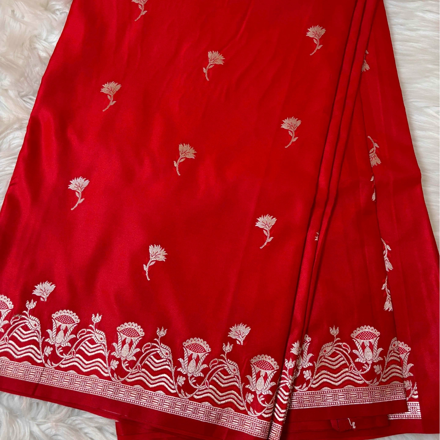 An elegant mashru saree adorned with delicate cocktail buta motifs that lend a refined and graceful charm. The smooth, lustrous texture of the fabric enhances its luxurious appeal, while the intricately woven border adds a touch of heritage artistry. A perfect choice for festive evenings and special occasions, this saree blends subtle sophistication with timeless tradition.