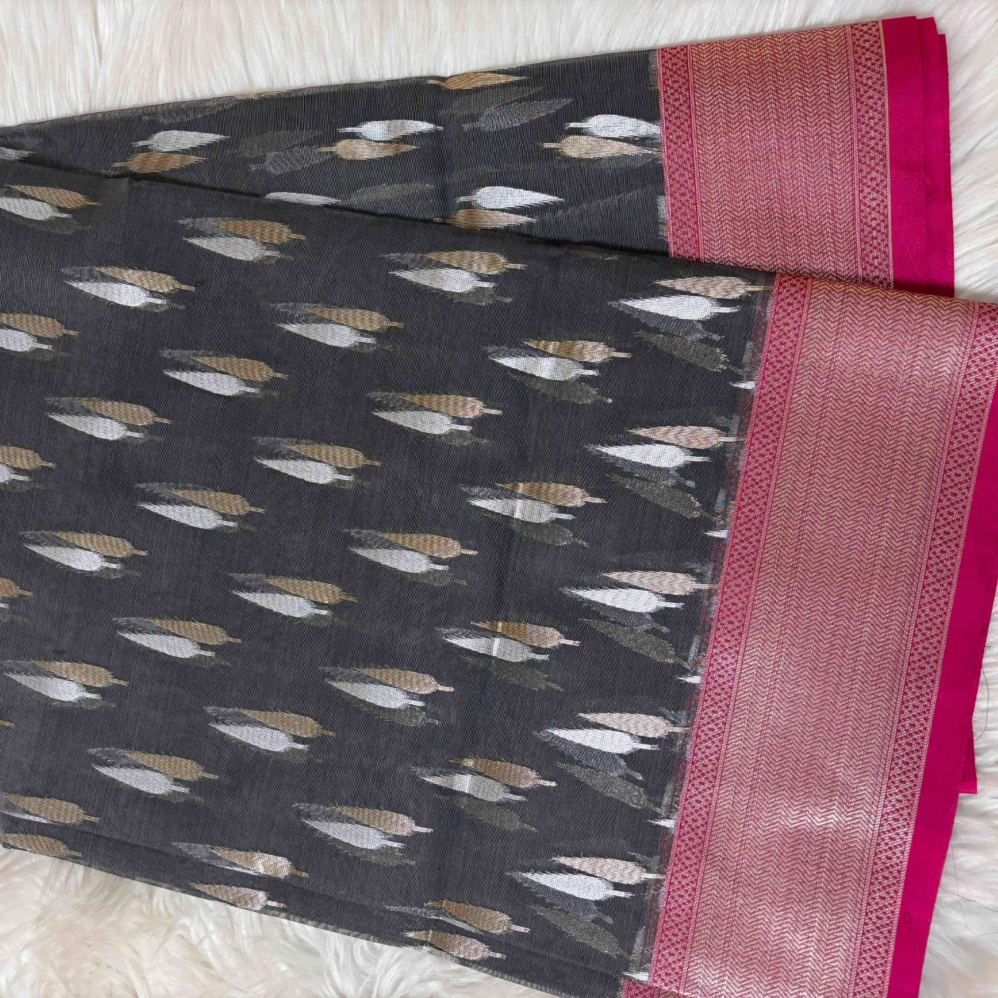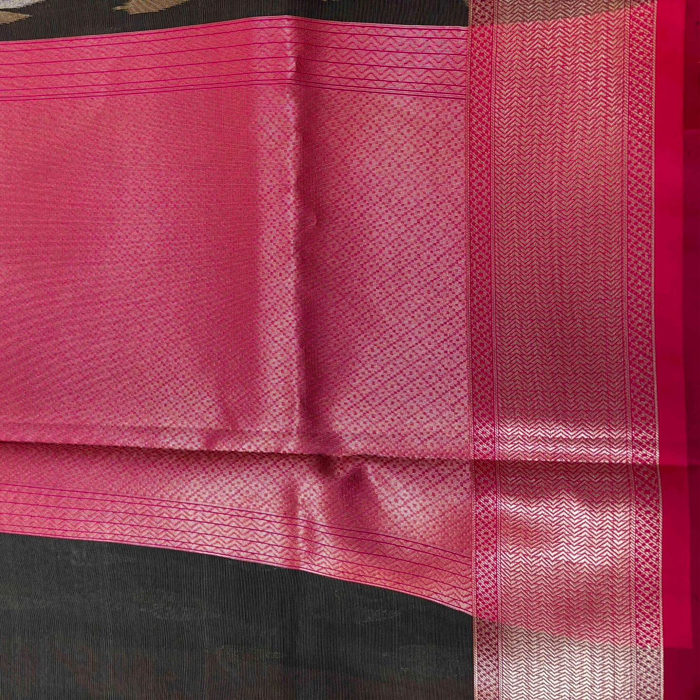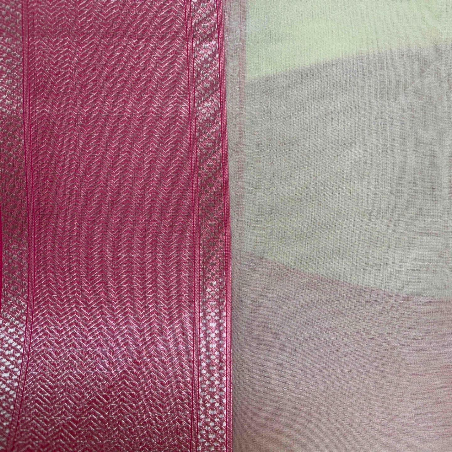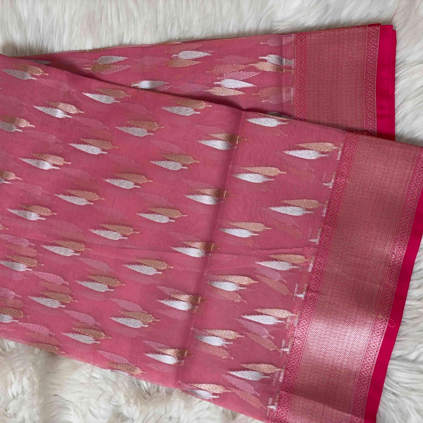 Woven in lightweight powerloom organza, this saree features delicately scattered buti motifs that lend a refined and airy appeal. The sheer texture enhances its graceful fall, while the intricately woven border adds a touch of traditional richness. Elegant yet understated, it is perfect for those who appreciate subtle sophistication with a modern finish.
