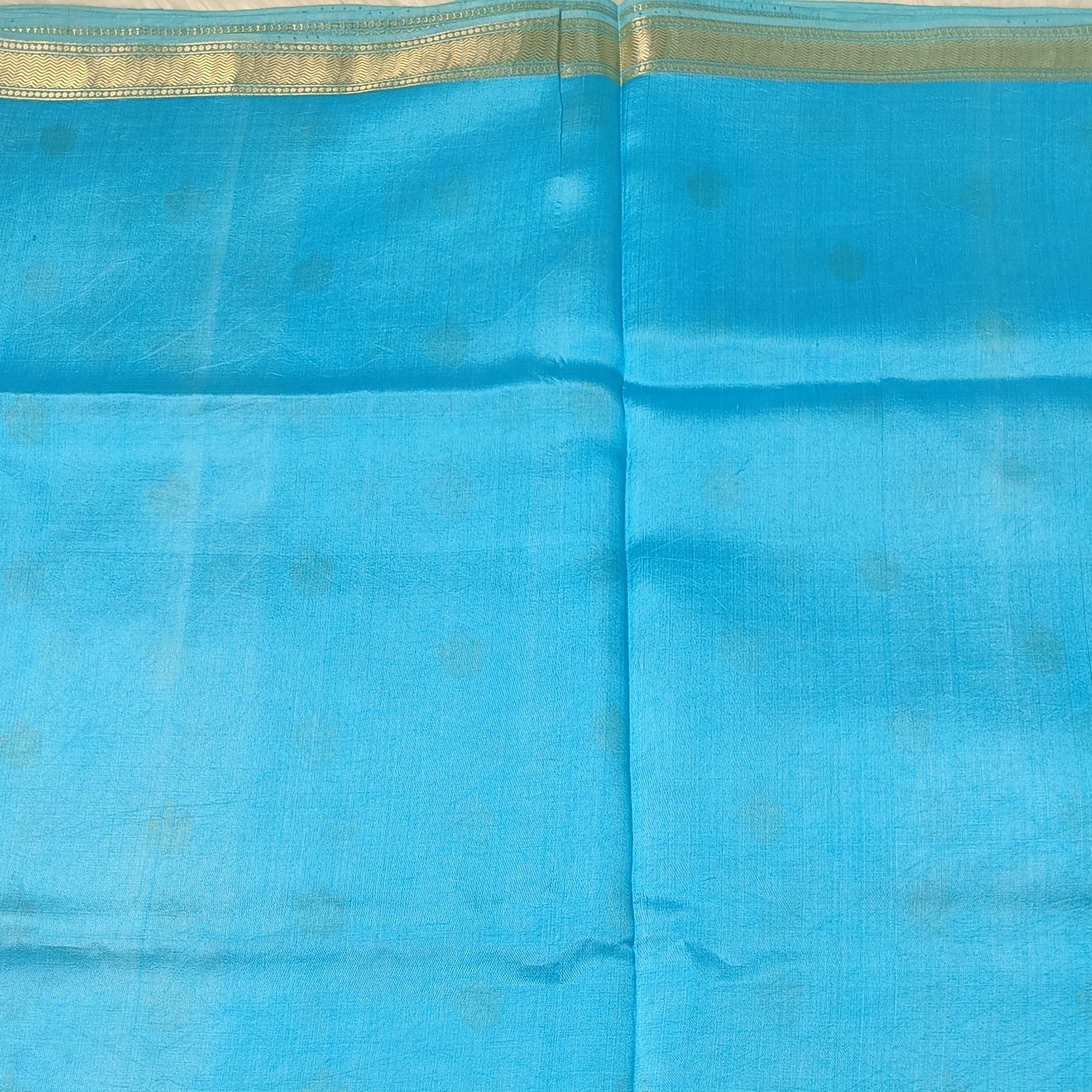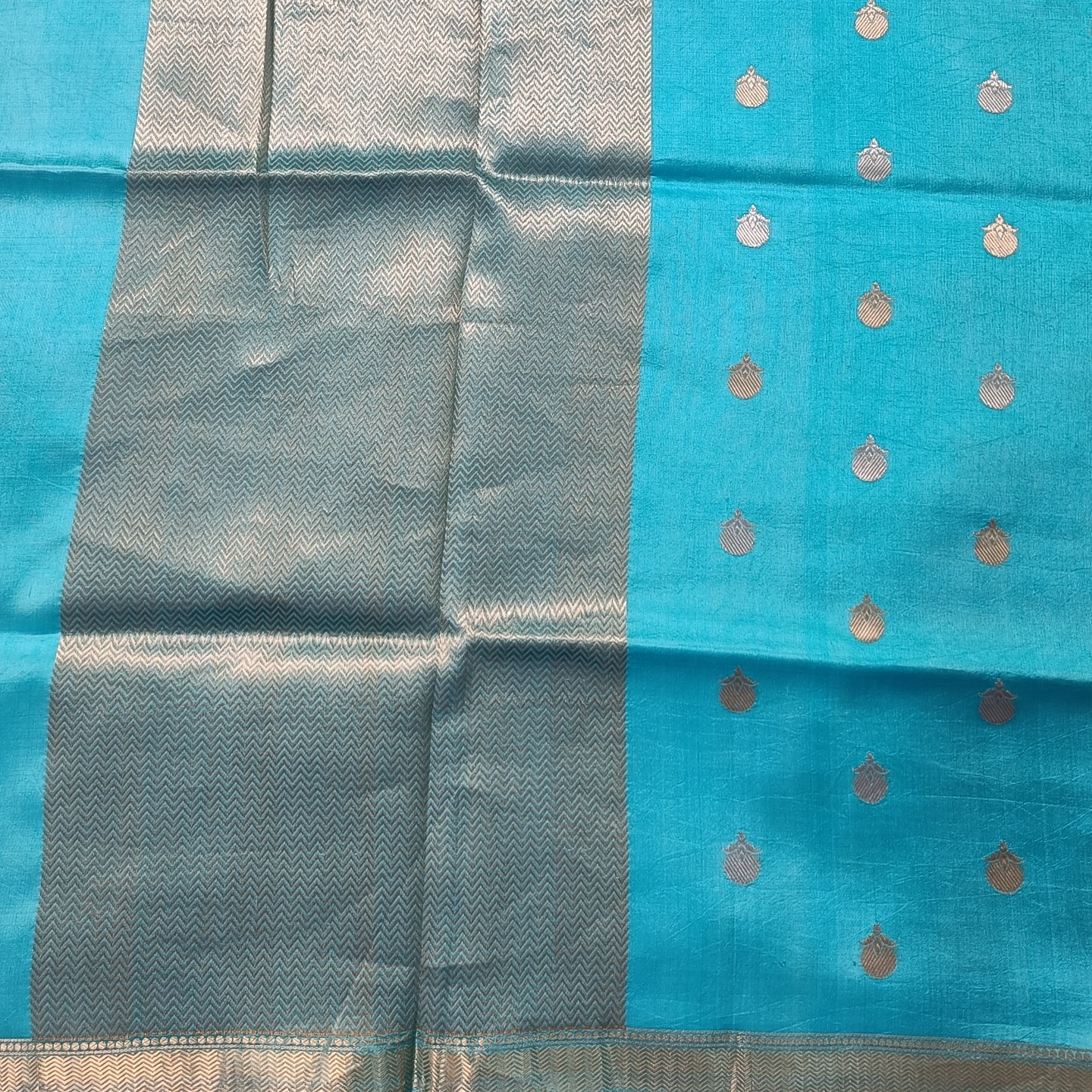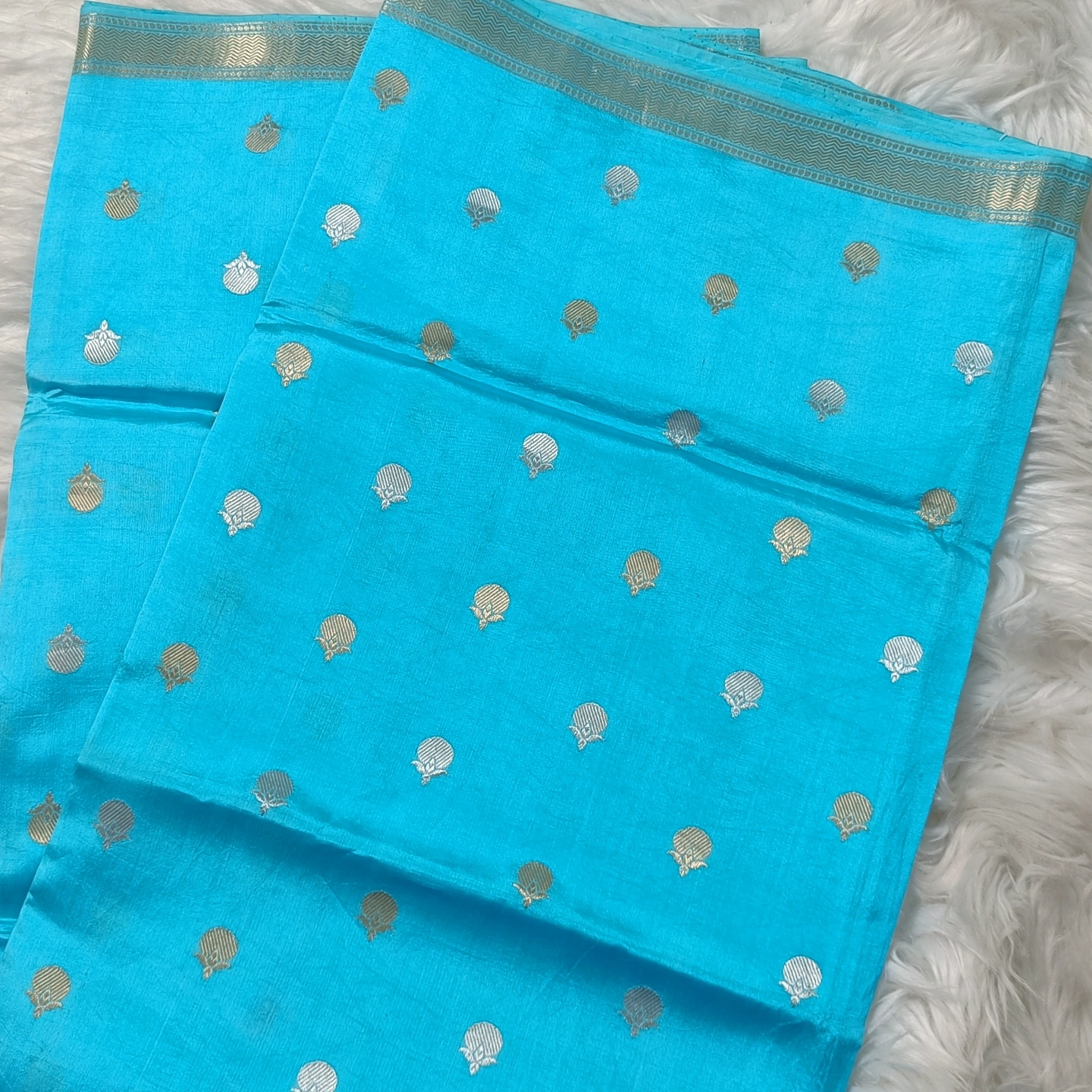 Woven in pure Katan silk, this saree features a smooth, lustrous texture with a graceful, structured drape. The body is adorned with finely spaced zari buta motifs that lend a subtle rhythm and elegance to the design. Complemented by a delicately woven border, it embodies a perfect balance of minimal charm and timeless sophistication, ideal for both intimate and festive occasions.