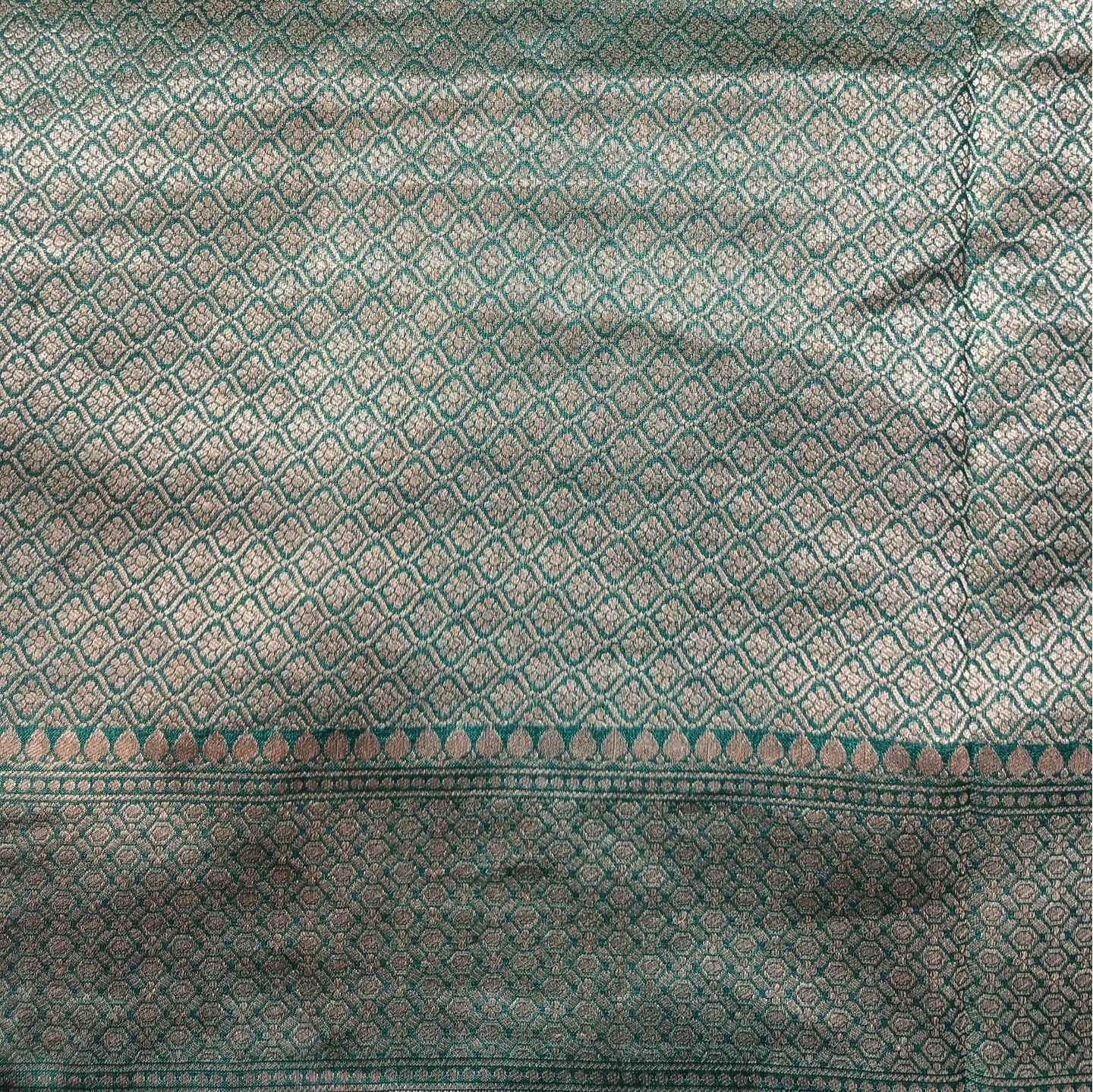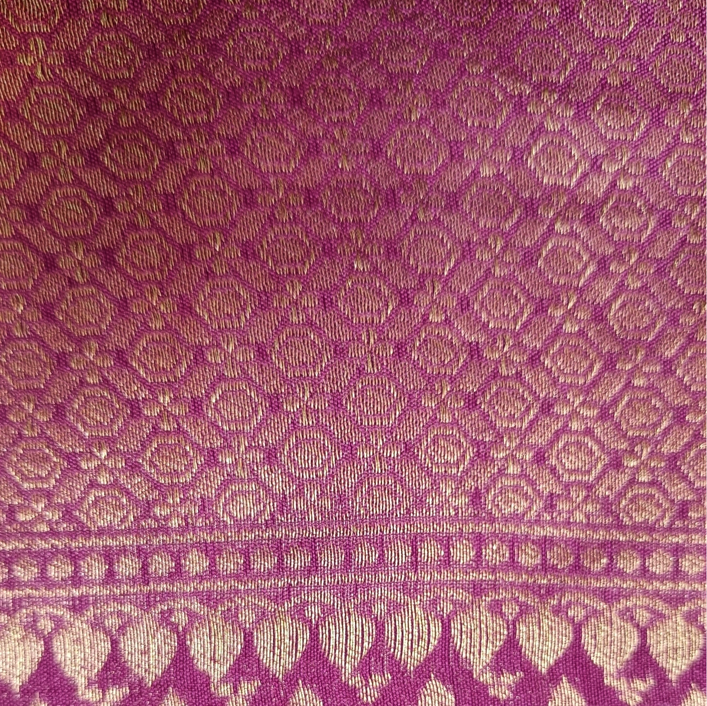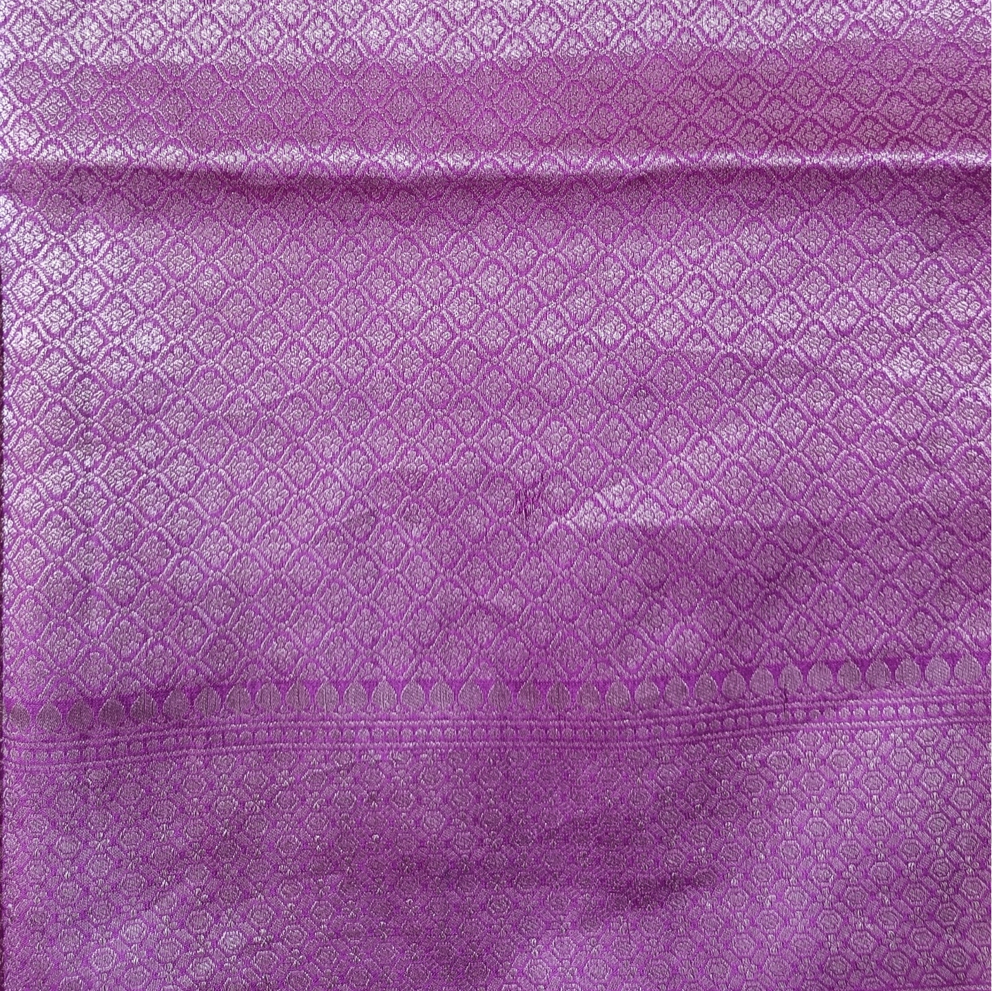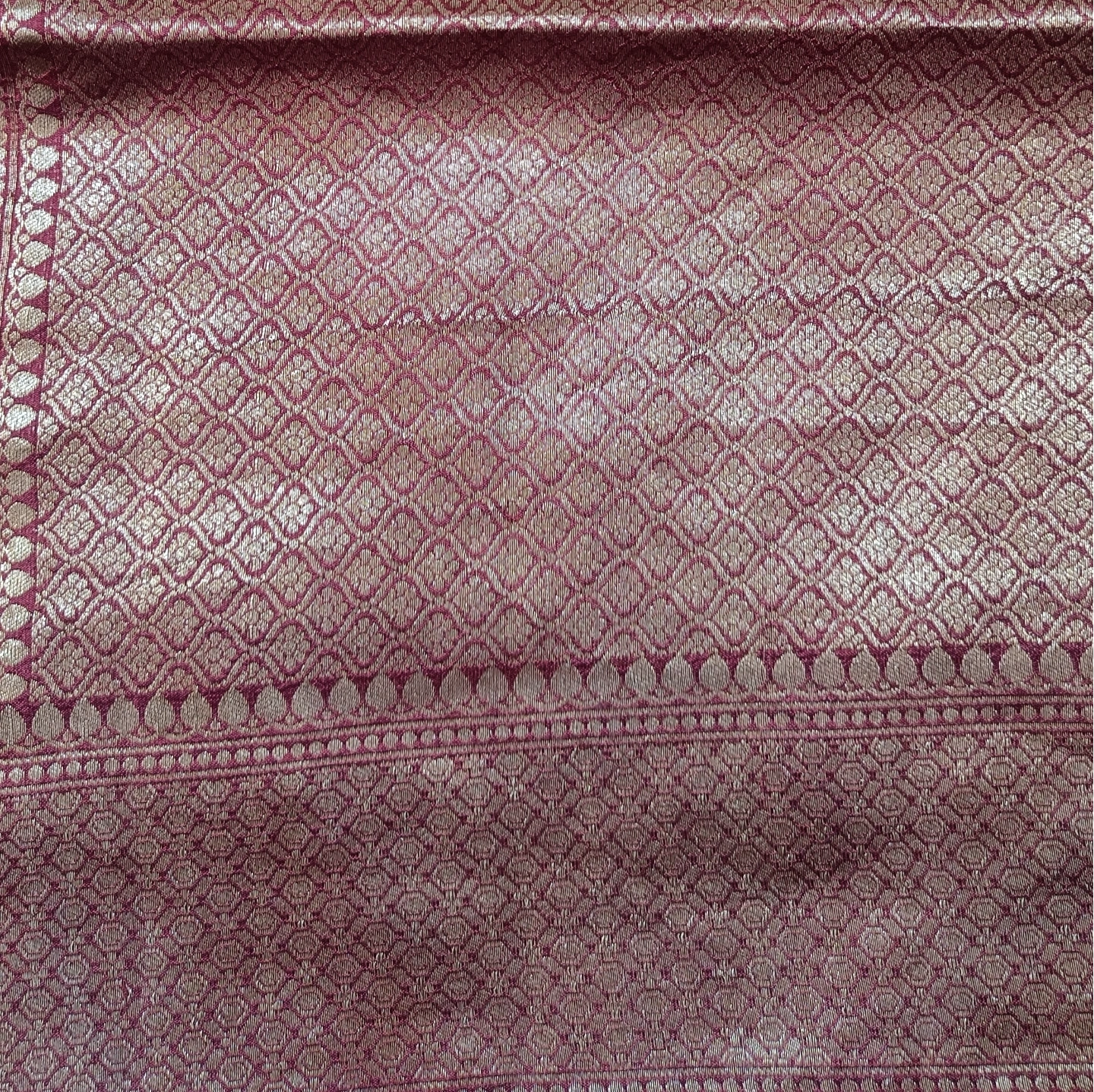 Woven in fine chiniya silk, this saree features an exquisite all-over floral jaal pattern highlighted with intricate zari work. The richly detailed pallu and densely woven border add depth and grandeur, while the delicate butti-style motifs enhance its traditional charm. With its soft texture and graceful drape, this saree is a perfect blend of heritage craftsmanship and refined elegance, ideal for festive and celebratory occasions.